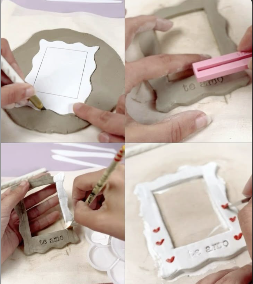 Un moment de complicité à partager avec maman, papa, papi, mamie, marraine ou parrain pour fabriquer des cadres photo en argile autodurcissante.